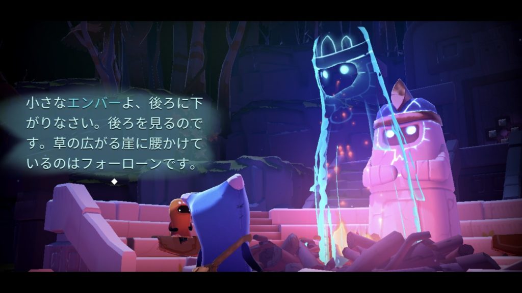 主人公エンバーは幻想的な世界を旅しながら、失われた人々を救い出し、さまざま生物と出会いながら最後のキャンプファイヤーを目指します。