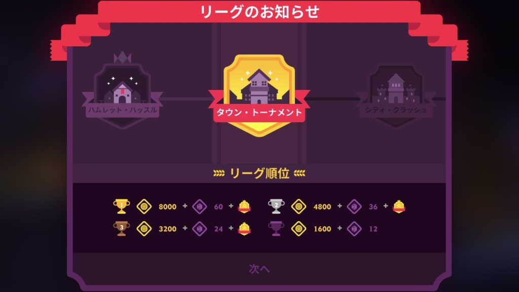 初めは下級リーグからのスタートですが、勝ち上がっていくにつれ相手は強くなり、得られる報酬も多くなります。