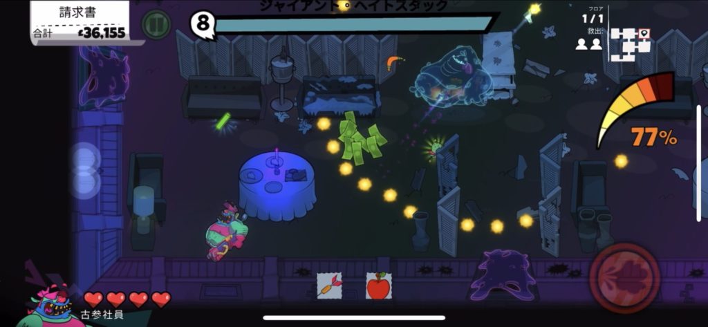Apple Arcadeでプレイできるオバケ退治ゲーム、Dead End Jobを久しぶりにプレイしている。ブランクから操作感をなかなか取り戻すことができず、1周目の30日間を終えて資金は目標の100万に遠く及ばず、2周目に突入することとなった。