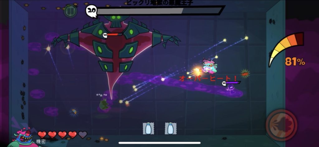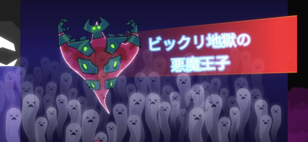 なお、ボス「ビックリ地獄の悪魔王子」は、宙に浮いているときはライフゲージがグレーとなり、ダメージを与えられない。