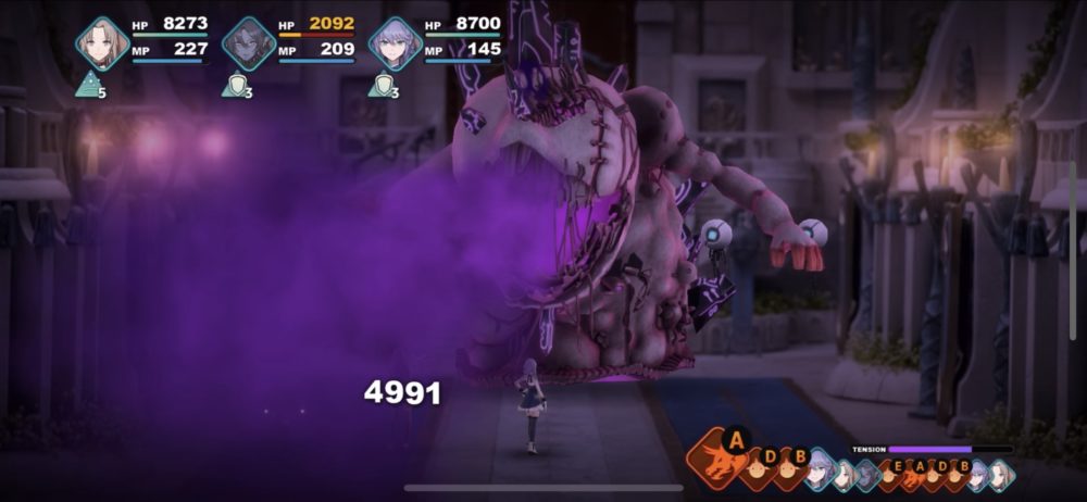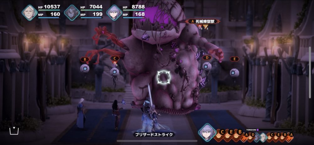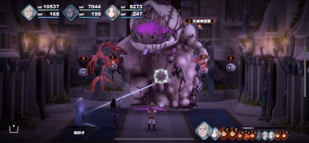 まず、死械煉獄獣には、口を開けた状態のときにシャルルの「ブリザードストライク」などで攻撃するしかダメージを与えられない(他にはバウリカの「アローレイン」など)。この戦いではシャルルが頼りなのだが、シャルルは他のキャラクターよりHPが低く、「呪走撃」などの攻撃に耐えられない。