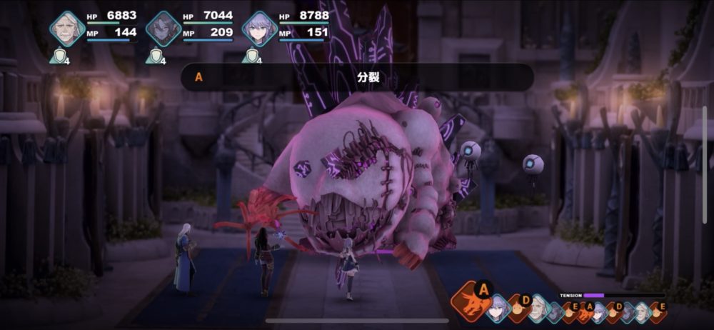 死械煉獄獣の攻撃について紹介しておく。まず「分裂」から。死械クラゲが残り2体程度になると、「分裂」で新たに呼び出してくる。