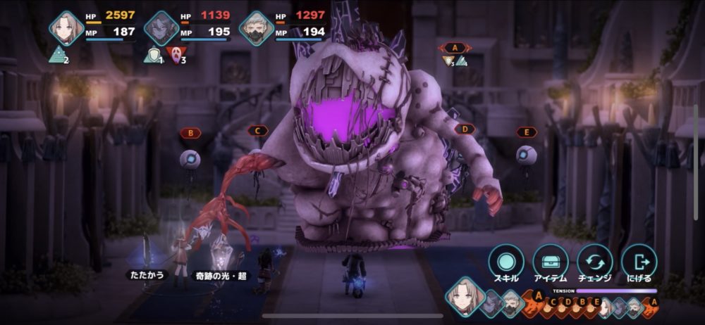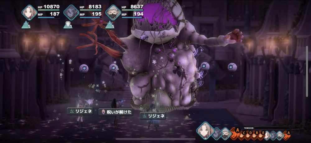 奇跡の光はパーティのHPを回復するだけでなく、呪い状態も回復したり、リジェネを付与してくれる。