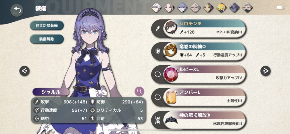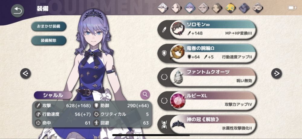 ・シャルル、タンは攻撃は頭一つ抜けているが、HP、防御が低いので、装備や成長マップを利用して弱点を補う必要があると思われる。