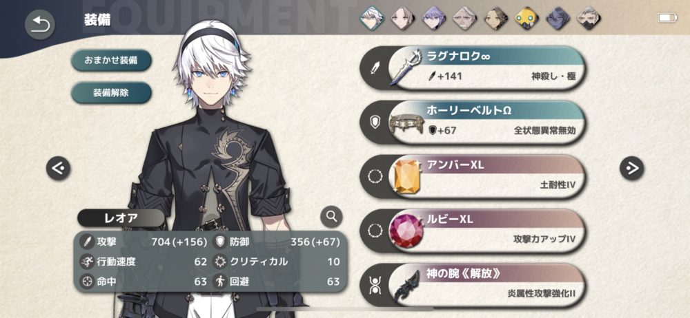 ・ステータスを見る限り、アタッカーになりえるのは攻撃が高いレオア、シャルル、ジニクル、タン、バウリカくらいまでだと思う。