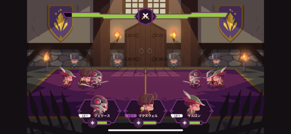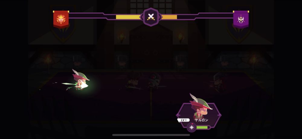 まず前衛同士がぶつかってノックバックしたところにケルロンの矢が当たり、相手のウォーリアーを1人倒した。