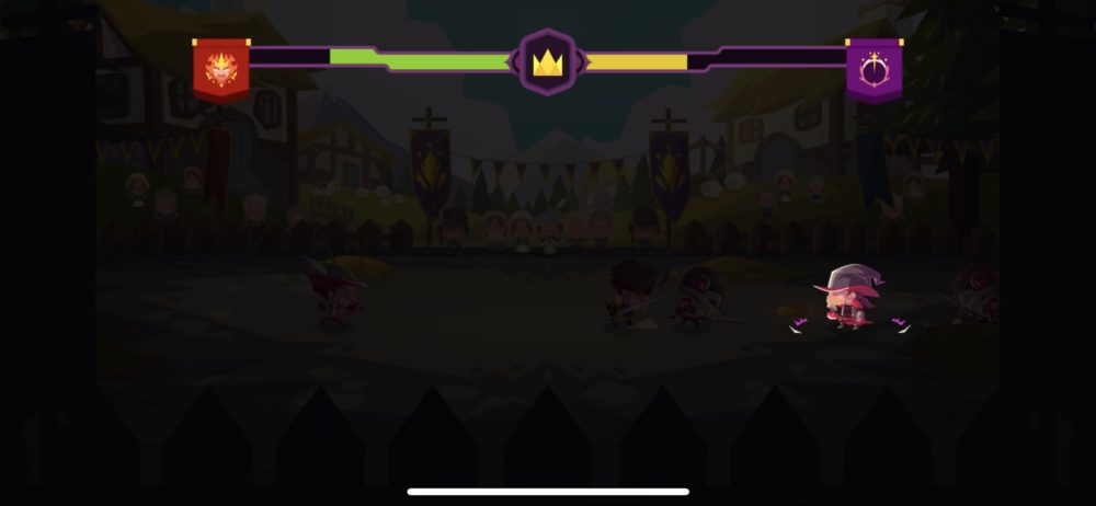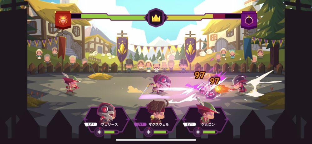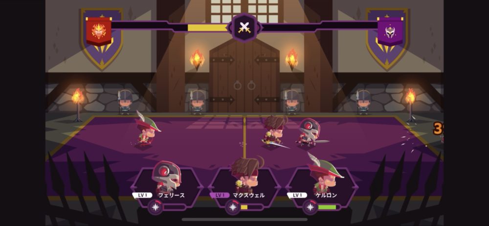 アーチャーのスキルで相手のウォーリアーをノックバックさせたところにゴゼリナスの魔法がヒットし、アーチャー1人を倒した。フェリースが倒されたが、これで3対2になった。
