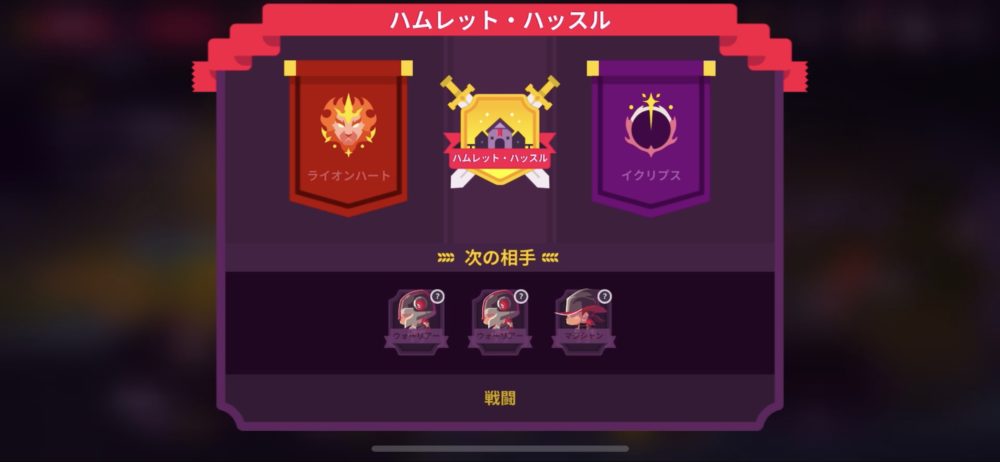 最初のリーグ「ハムレット・ハッスル」の3戦目の相手はこちらの通り。いかに2人のウォーリアーのガードを崩し、マジシャンを倒すかがポイントになりそうだ。