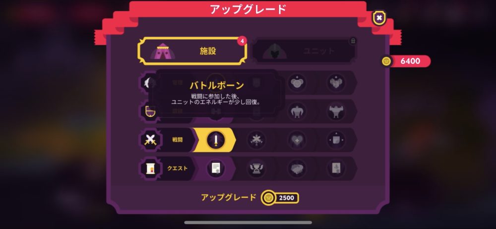 ・施設のアップグレードで「トレッカー」「バトルボーン」をアップグレード