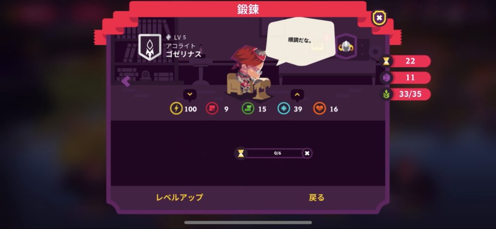 アコライトのゴゼリナスはコモンユニットのため成長率が低いが、それでも知力はほぼ40になった。