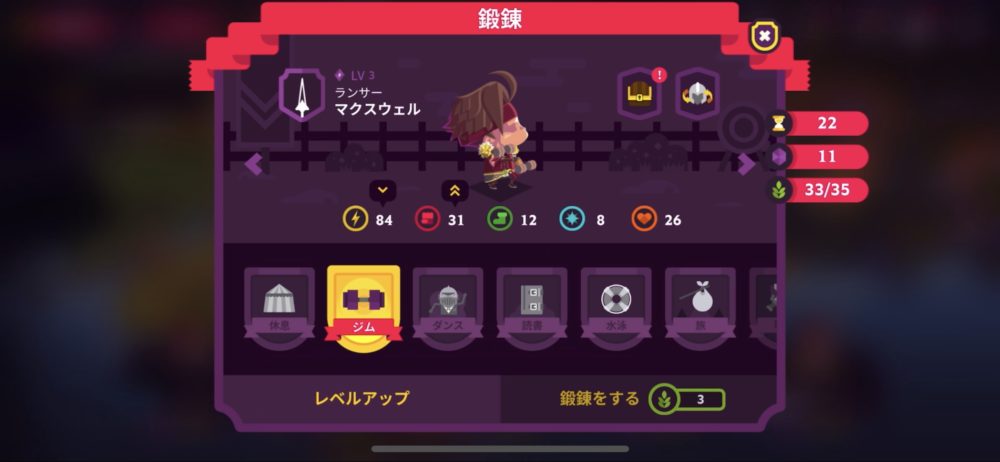 リーグ戦まで時間があまり残っていないのが、鍛錬ポイントを使い切ってユニットを強化しておく。マクスウェルは攻撃力が30を超えた。