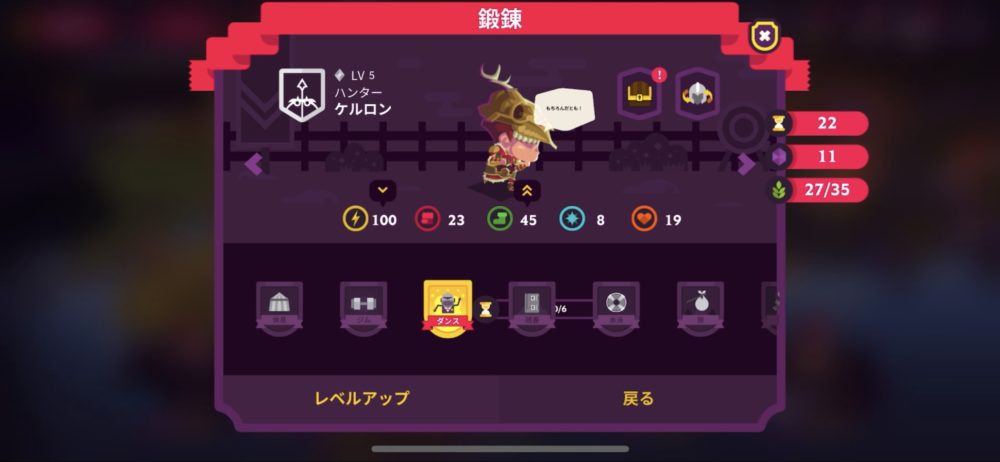 ケルロンは素早さが40を超え、初めは少なかった活力も、今ではほぼ20まで増えた。