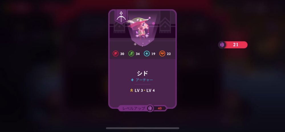 宝石が40個以上になったので、アーチャーのシドをレベルアップさせた。