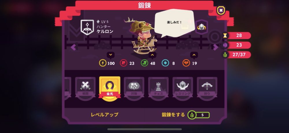 ハンターとレンジャーは乗馬を選び、素早さと活力をアップさせることにした。