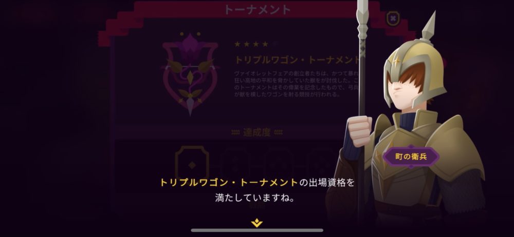 トリプルワゴン・トーナメントに出場するには、8つの施設の番人になる必要がある。ルンデーン町の番人に勝利したことで、出場できるようになった。