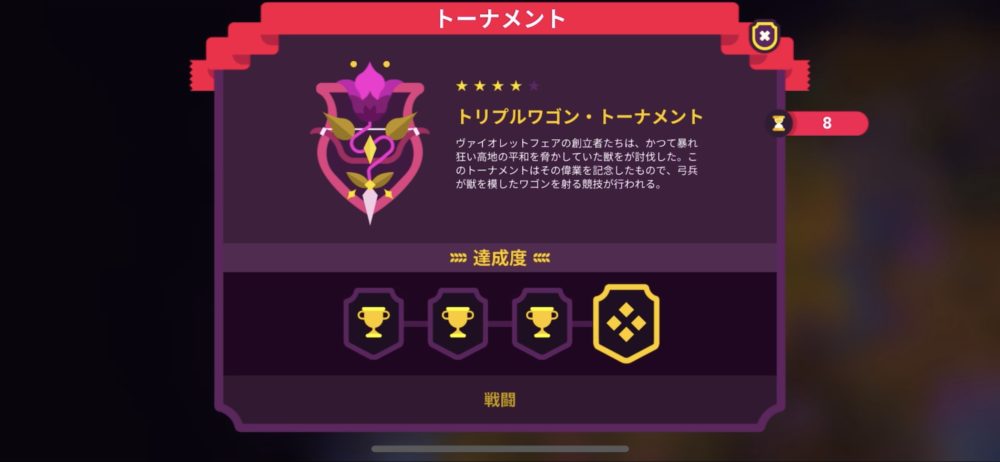 クラシックモードでのアンロック条件の一つに「1831年より前にトリプルワゴン・トーナメントをクリアし、かつクラシックモードを1回クリアする」というものがあり、来月までにクリアすれば条件を達成できる。期限より1か月早いが、挑戦することにした。