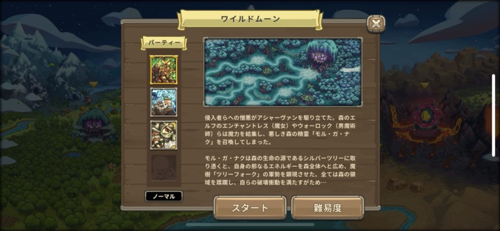 Apple Arcadeでプレイできるストラテジーゲーム、Legends of Kingdom Rushの新マップ「ワイルドムーン」を攻略中だ。前回は敵の戦力を確認したので、モル・ガ・ナクの完全攻略を目指して、レジェンドや仲間の選択などパーティの構成について考えつつ、マップの攻略を進めていこうと思う。