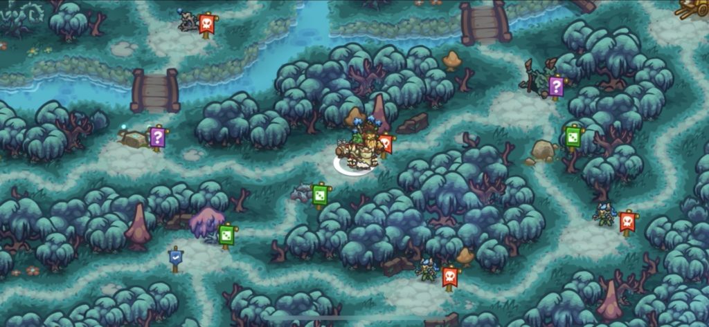 Legends of Kingdom Rushでは、レジェンド(ヒーロー)1人と仲間2人の3人パーティでスタートし、進行中に仲間を1人加えることができる。なお、進行中に出会う仲間(ランダムに選ばれる)を加えるか、酒場にいる複数の仲間から1人を加えることができる。