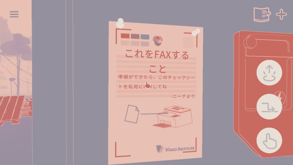 これで、最初の準備は完了した。次は依頼主であるニーナ・ショルツ教授とコンタクトを取ることになる。チェックシートをFAX機にセットして、FAXのアイコンをタップすると送信できる。