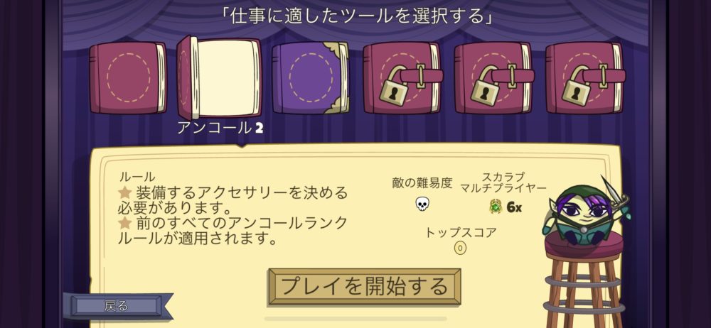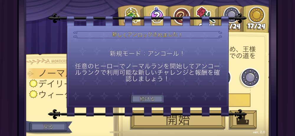 アンコール2だけ何度かトライしてクリアできた。クリア出来たステージにはバラの花が表示される。そしてアンロックされたアンコール3のルールはこのようになっている。