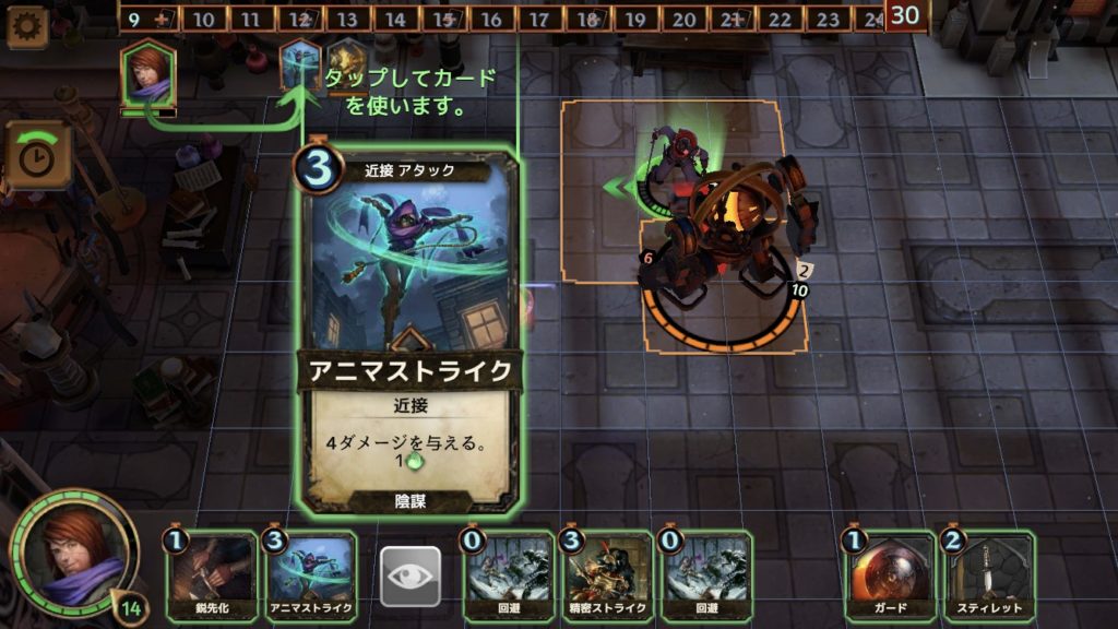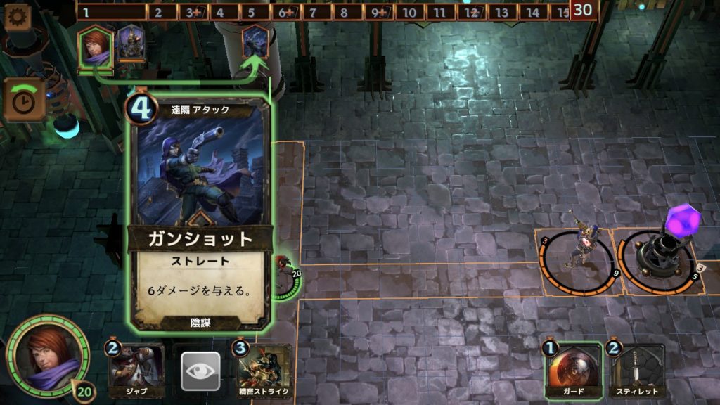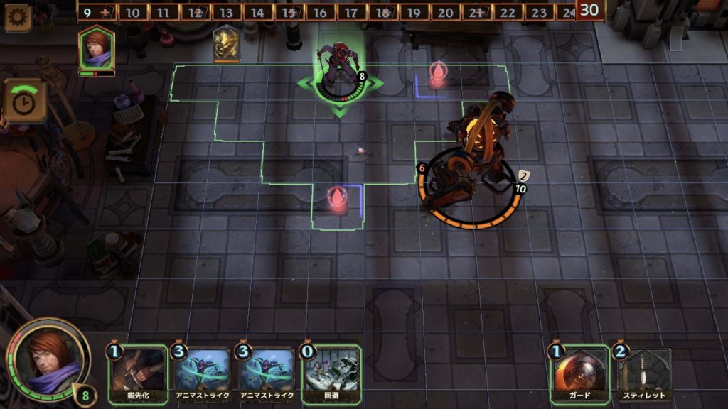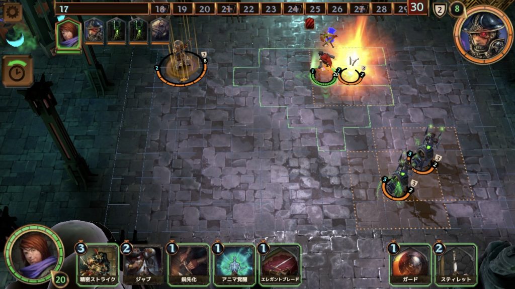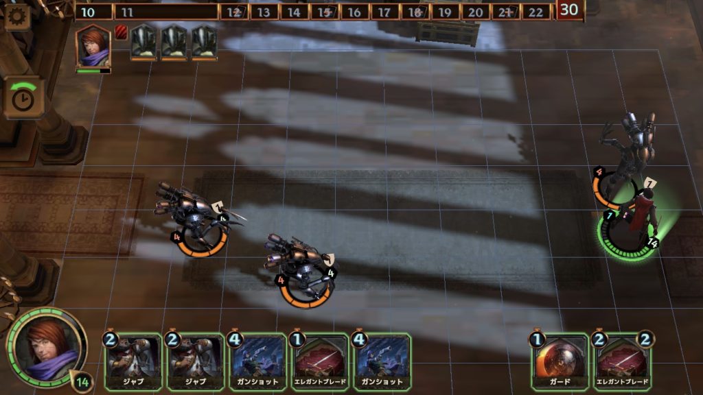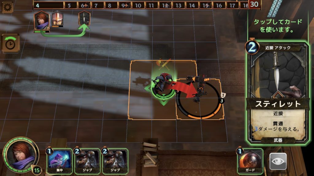 そうすると、4ターンではスティレットのダメージが3になり、衛兵を倒すことができる。