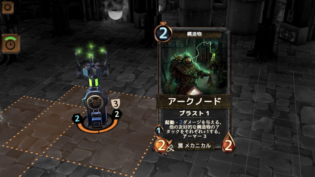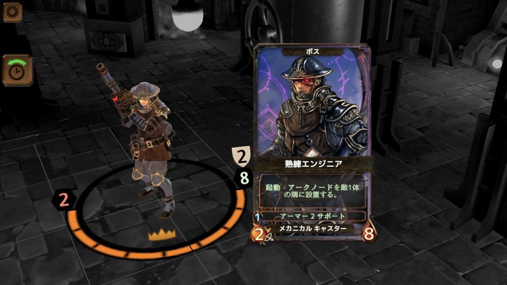 熟練エンジニアはHPが8、攻撃力が2と、強そうに見えないが、アークノードやダイノマインを次々と仕掛けてくる強敵だ。