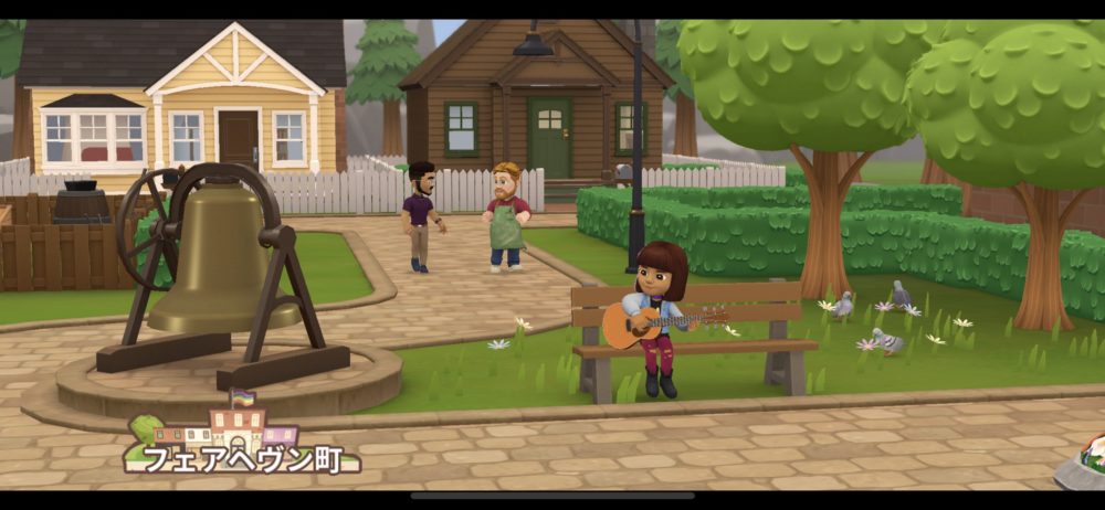 このゲームは、とある島にあるフェアヘヴン町が舞台となる。このように温かみのある色使いで町並みとそこで暮らす人々が描かれている。