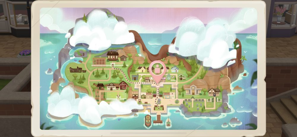 さて、リナにヘーゼルおばあちゃんの家までの道順を教えてもらったので、地図で確認しておく。すると、この町の全体像が分かる。雲に覆われた場所にも何かがあるようだ。