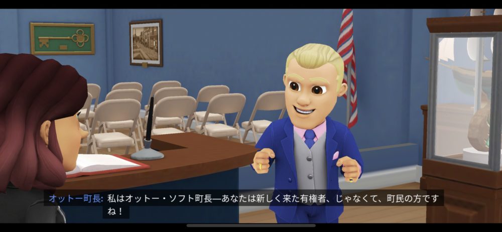 さて、ヘーゼルおばあちゃんの農場を一旦離れて町の中心部へ向かい、町長に出会う。